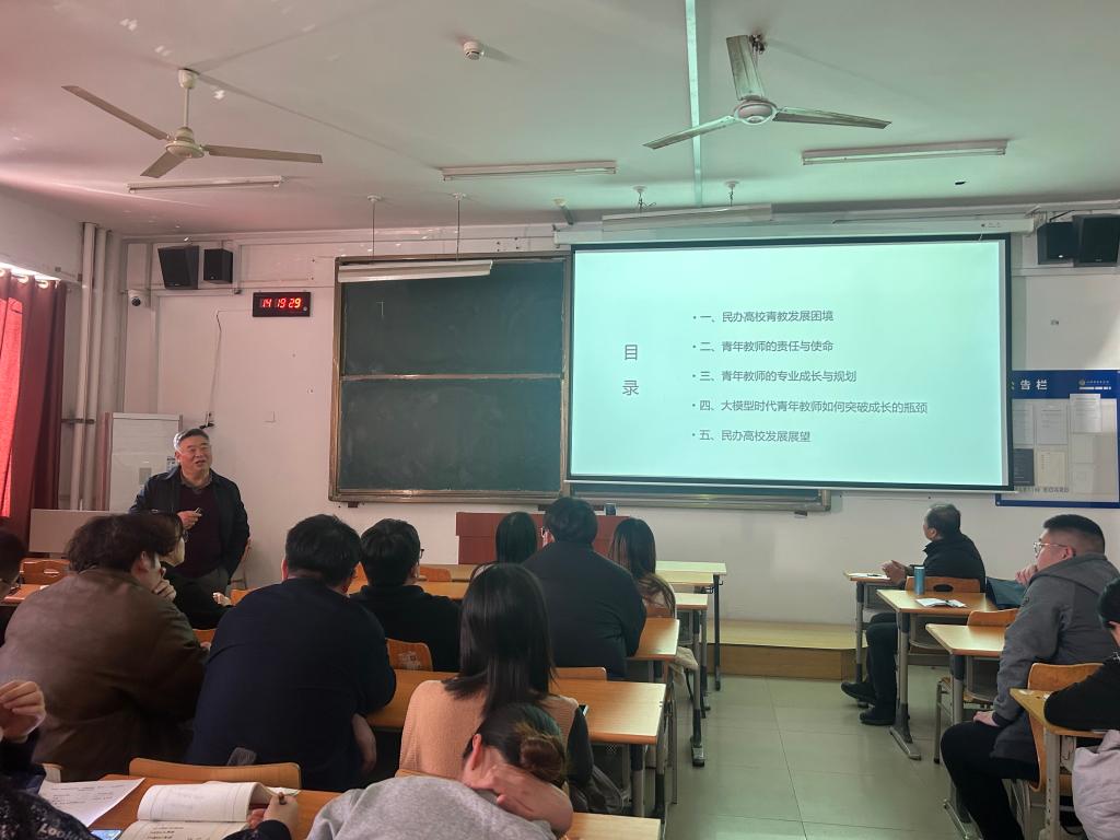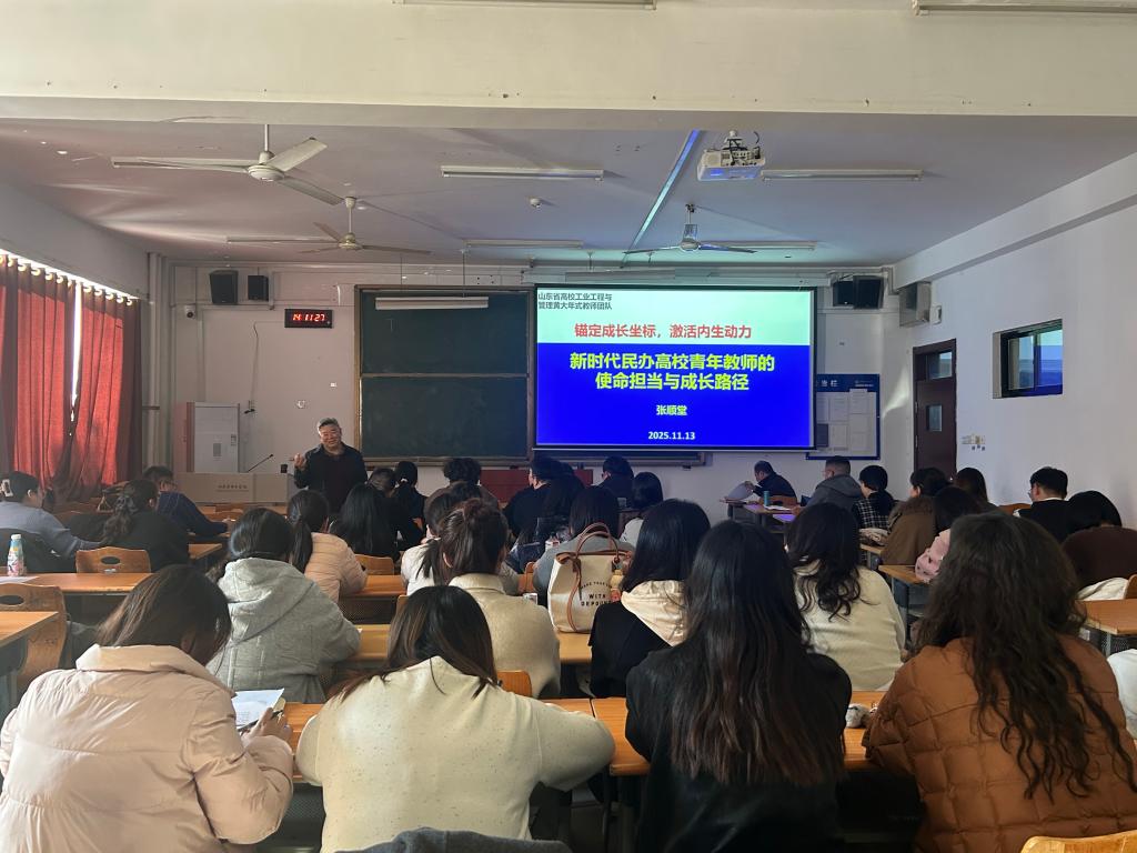 11月13日下午,院在力行楼103室举办“锚定成长坐标,激活内生动力——新时代民办高校青年教师的使命担当与成长路径”专题讲座。讲座由山东工商英国上市公司365教授、山东省教学名师张顺堂主讲。活动聚焦青年教师职业定位、专业成长与内生动力激活等关键议题。