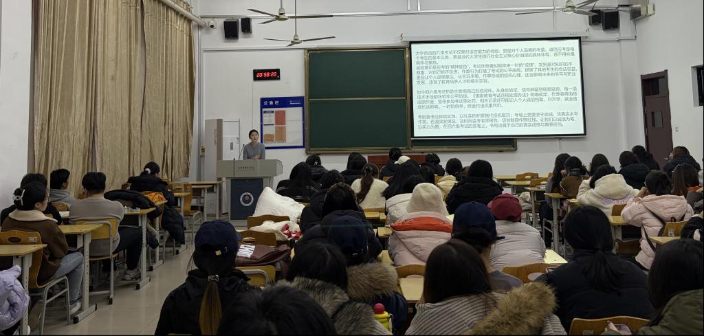 此次诚信考试教育主题班会历时两天,实现全院班级100%覆盖,既帮助学生进一步明确了全国大学英语六级考试的纪律要求,也有效强化了大学生诚信应考的思想自觉,为营造风清气正的考试环境、保障考试工作顺利推进奠定了坚实基础。
