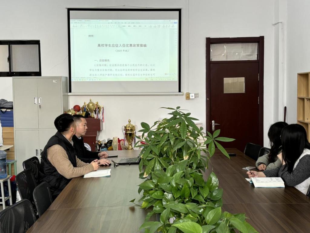 会议伊始,全体与会人员一同观看了征兵宣传片。视频生动展现了军营中热血激昂的青春画卷、军人肩负的家国责任,以及高校毕业生投身军旅后的成长与蜕变,直观诠释了“携笔从戎、报效国家”的青春意义,为后续动员工作奠定了坚实的思想基础。
