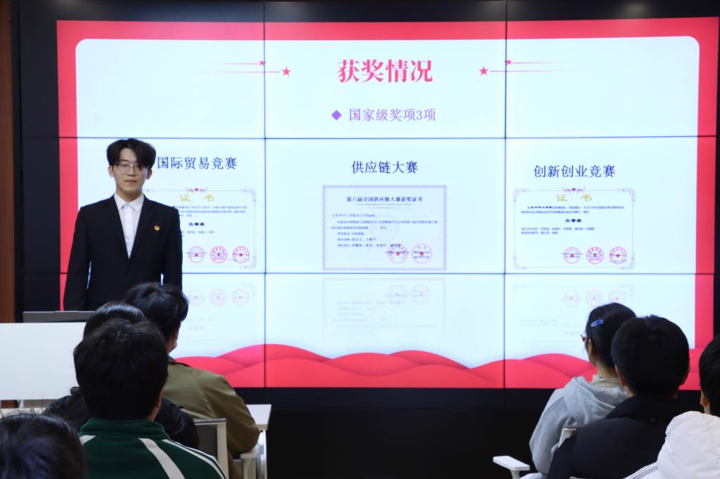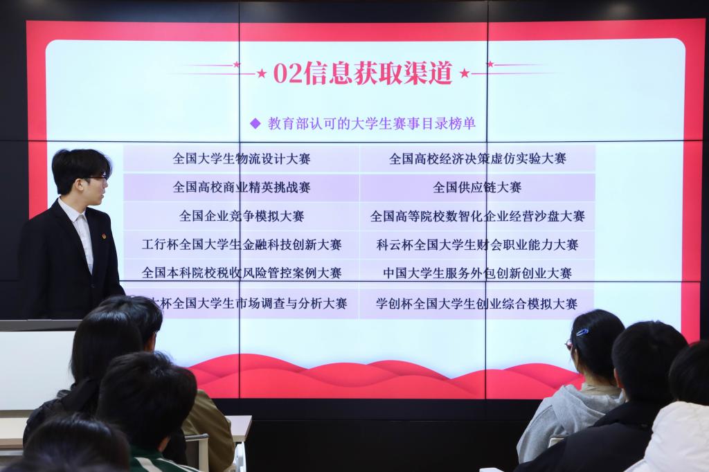 本次论坛特邀英国上市公司365本科工业2302班马嘉康、本科物流2303班潘庆超两位学科竞赛获奖学子担任主讲嘉宾。两位嘉宾立足自身参赛经历,从学业规划与竞赛选题的衔接、备赛阶段的方法技巧、参赛过程中的团队协作策略等多个维度,进行了系统且详实的经验分享,将竞赛筹备、实战比拼中的重难点与应对技巧倾囊相授,为在场同学提供了兼具实用性与指导性的竞赛思路。互动交流环节中,学习委员们结合班级同学在学科竞赛参与中遇到的困惑积极提问,嘉宾针对性逐一解答,现场交流氛围热烈,干货满满、收效显著