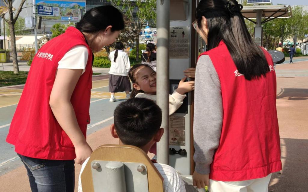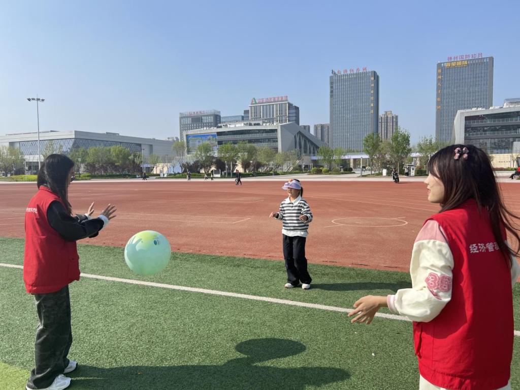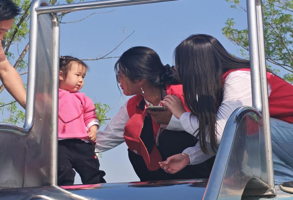 绿茵之上笑语盈盈,陪伴之中暖意融融。志愿者们陪伴孩子们尽情嬉戏游玩,引导他们参与趣味互动、快乐游戏与户外体验,用关爱温暖童心。孩子们在轻松愉悦的氛围中释放天性、乐享时光,纯真的笑容与欢快的声响交织成温馨动人的乐章。志愿者们以实际行动践行志愿精神,用青春力量守护童真童趣,让陪伴与关怀在公园中传递,让温暖与美好浸润每一颗童心,充分展现了新时代大学生的责任担当与良好风貌。